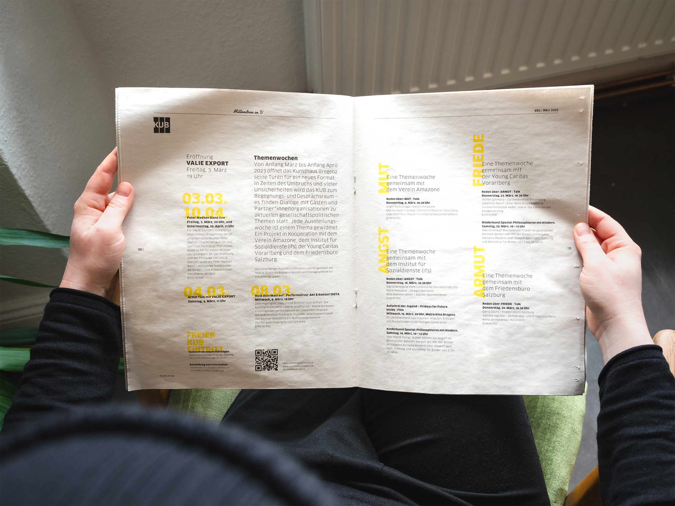 Zeitgleich zur Ausstellung wurde das KUB zum Begegnungs- und Dialograum. Zu den Themen MUT, ANGST, ARMUT und FRIEDE gab es Gespräche mit Gästen und Organisationen.